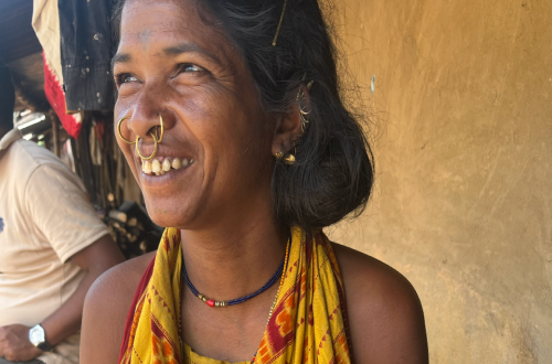 The Niyamgiris are home to the Dongrias’ principal deity, Niyam Raja. Their sacred hills are represented in both their temples and textile through repeated triangle motifs.