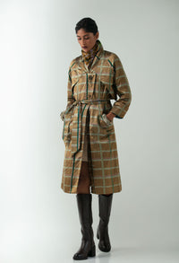 Khandua silk in chequered green and gold inspired by the Eastern Ghats