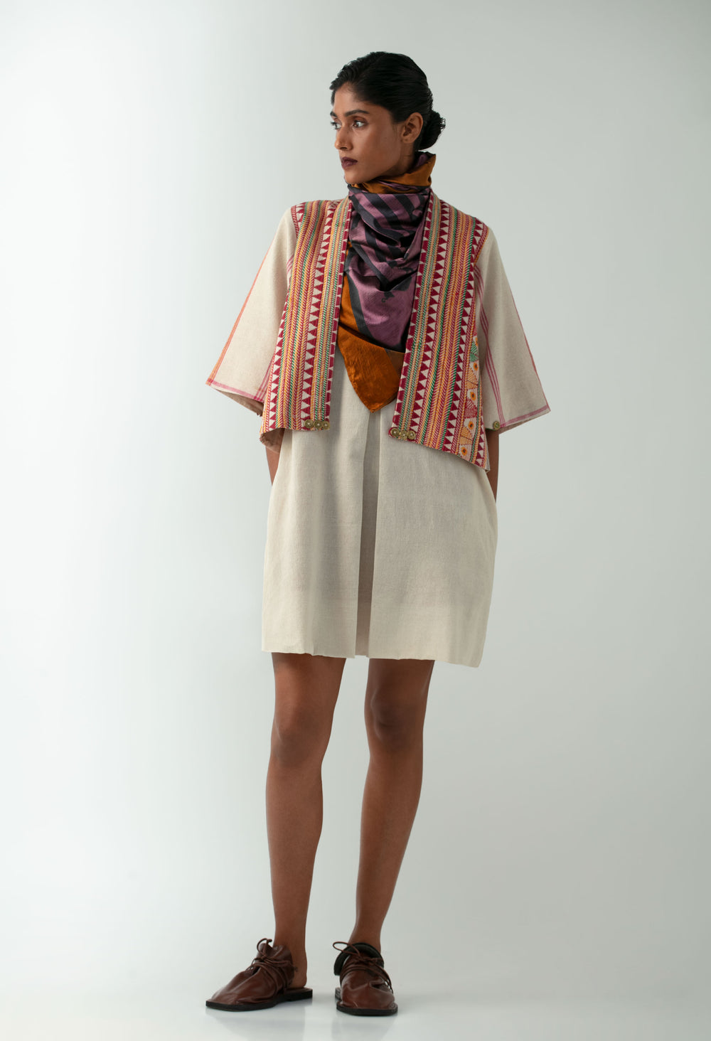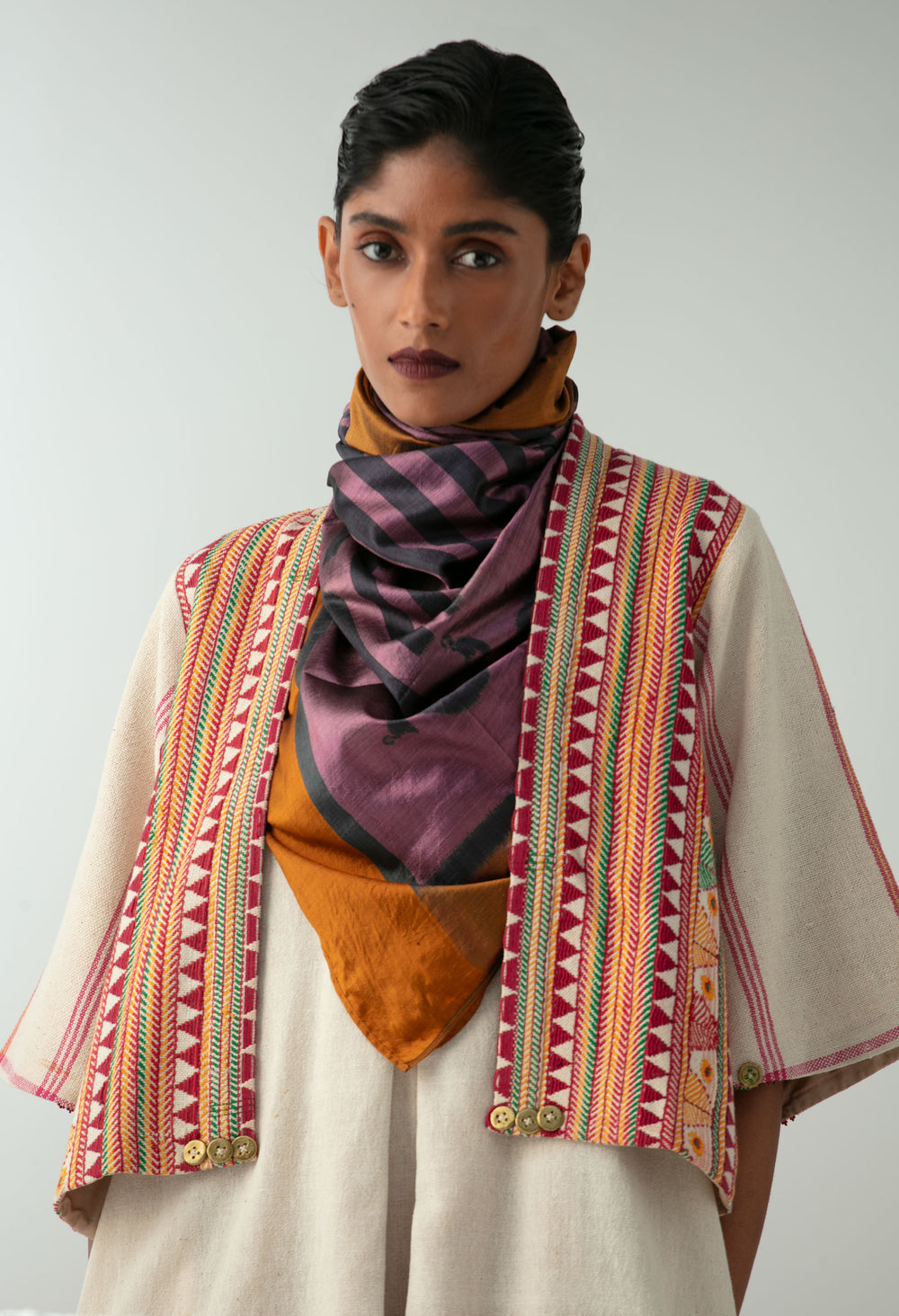 Created from a kapdaganda shawl embroidered by the Dongria Kondh community, with dhokra accents