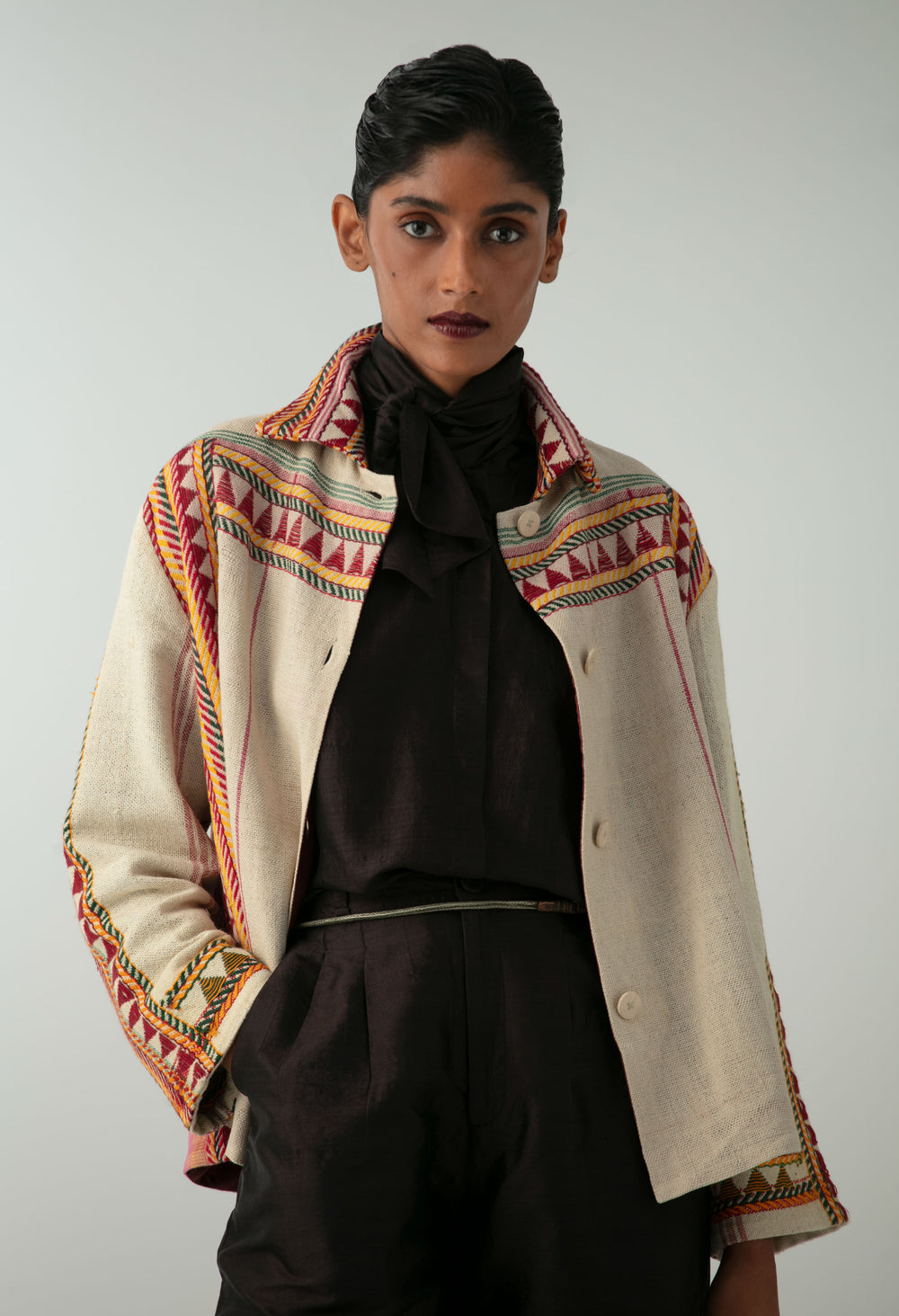 Created from a kapdaganda shawl embroidered by the Dongria Kondh community